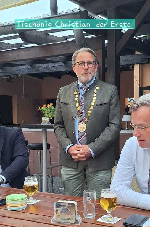 Nachdem man sich alle wieder etwas frisch gemacht hatte, traf man sich abends im Schumacher auf der Oststraße mit Partnern. Dort schaute auch mancher Nichtradfahrer vorbei. OB Thomas Geisel, der