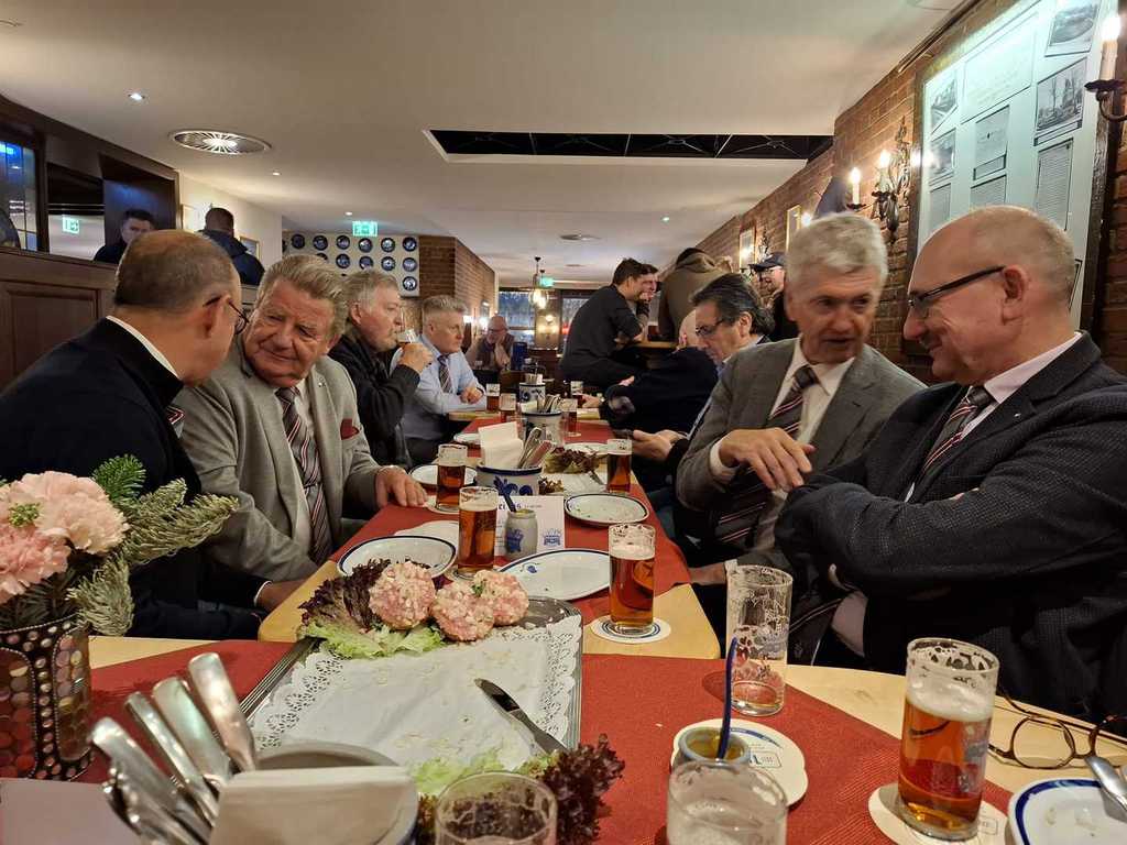 Nach ihrem Frühschoppen, der von projezierten Bildern aus dem Album der Löschzug-Historie untermalt wurde, ließen es sich die Gäste bei einem schmackhaften Grünkohl gut gehen. Der II. Löschzug sieht